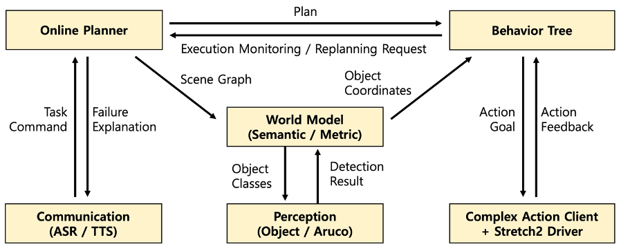 - Engineered a real-time ROS2 framework for reactive mobile manipulation by parallelizing 3D scene-graph construction and IK-based control through Behavior Tree